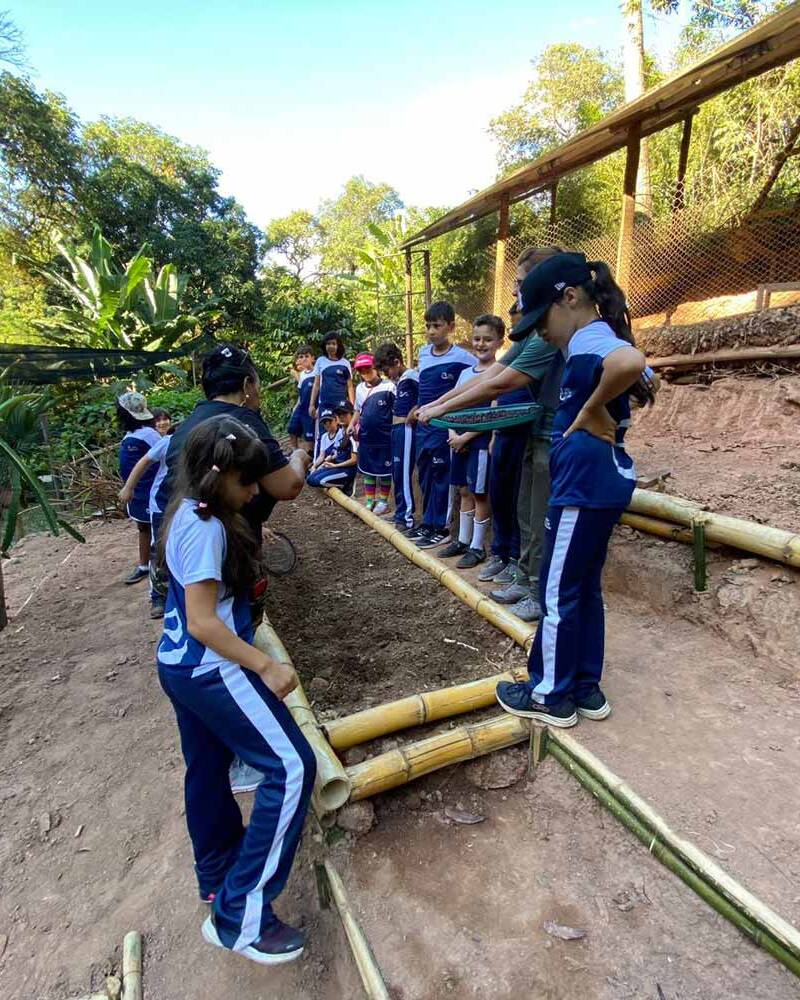 Além da trilha ecológica, a escola poderá escolher até três das opções de oficinas apresentadas abaixo, observando o tempo de duração estimado de cada uma delas, até completar duas horas e trinta minutos de planejamento. Dessa forma, podemos personalizar a visita de acordo com os interesses e vivências prévias de cada grupo.
