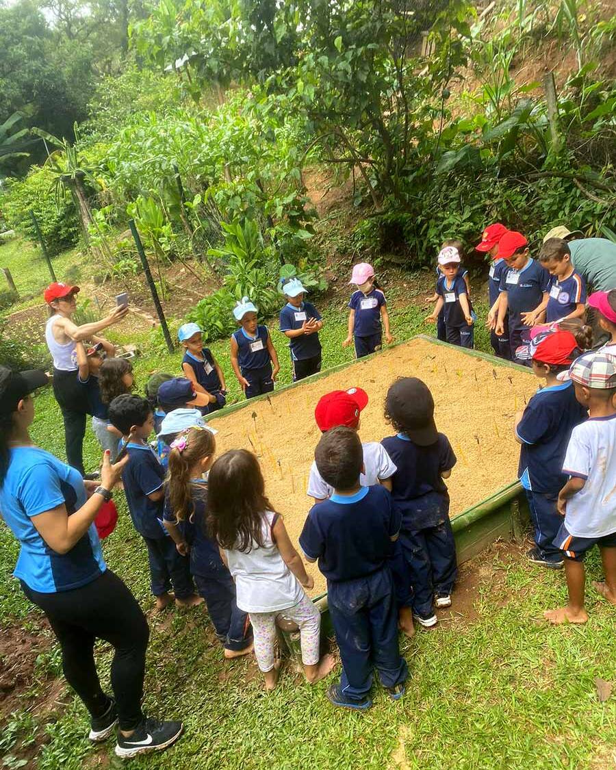 Pisar na lama, nas folhas secas, sentir o cheiro e a textura de diferentes plantas, passar a mão em diferentes animais, ouvir os sons da natureza, sentir o gostinho de hortaliças e frutas. Nessa oficina, as crianças serão convidadas a explorar a natureza de forma sensorial.
