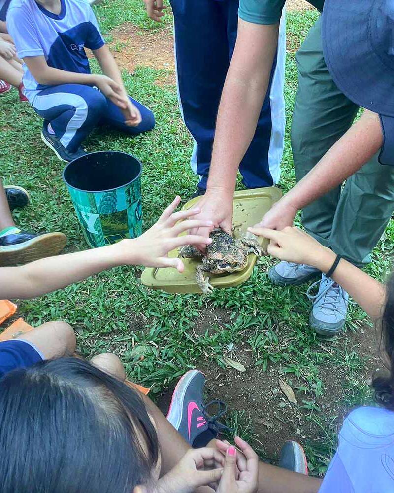 A oficina é voltada para as espécies encontradas na reserva, que são representativas da biodiversidade da nossa região. Ela se desdobra em atividades de observação, investigação e registro dos animais.